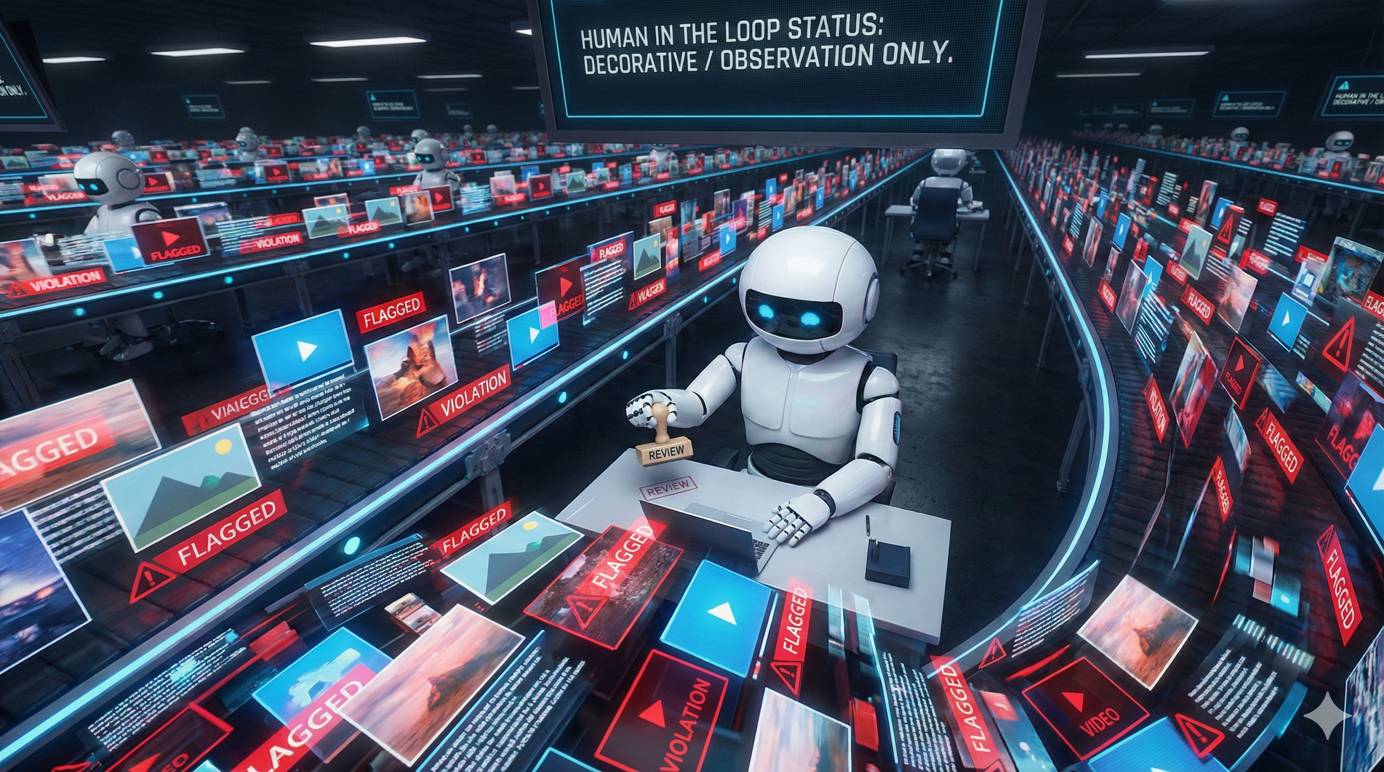 The human exists to legitimate the system, to make it look governed. Actually governing it would slow things down.
