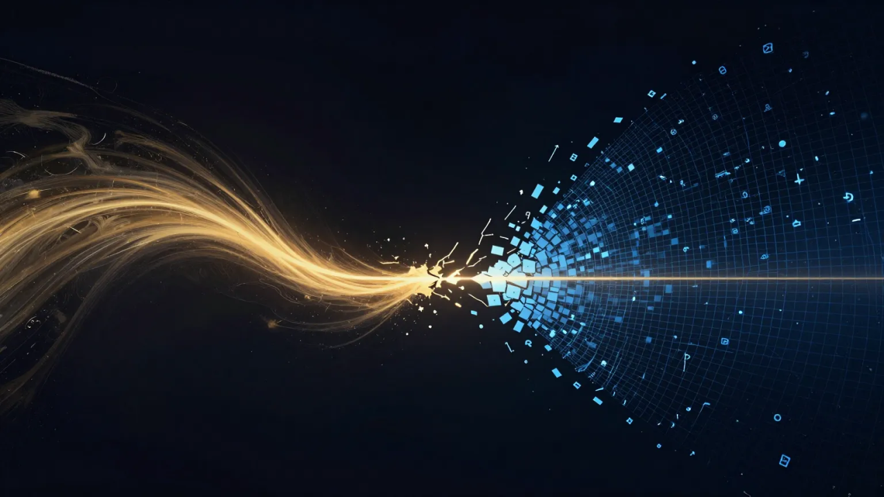 The other is discrete. Symbolic, compositional, tokenized. It takes that rich continuous field and breaks it into manageable units that can be named, stored, compared, transferred, scored, and acted upon. It is how institutions make a world legible enough to discuss.
